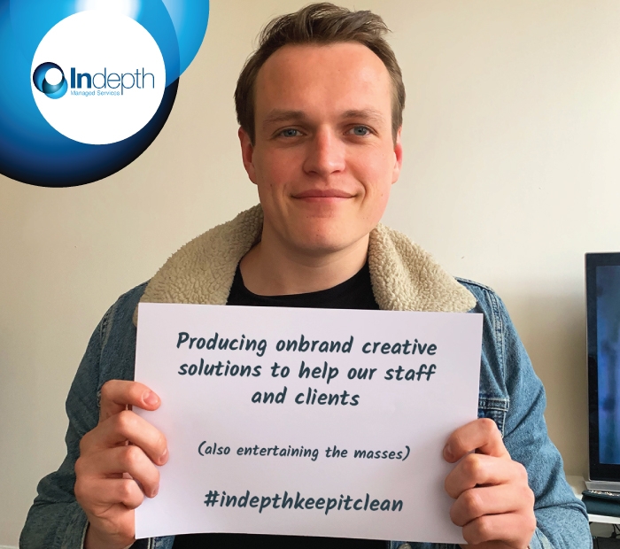 Jordan Yates is our Senior Creative Designer and is the face of our #indepthkeepitclean campaign today. Jordan has been producing some great artwork to accompany some key messages going out to clients, employees and prospects. He also puts a smile on our faces!